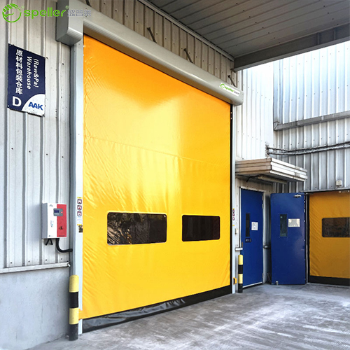 上图为:智能立体库安装的冷链物流快速门