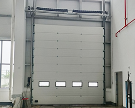 上图为:厂房大门安装的垂直电动提升门(工业提升门的其中一种提升方式)